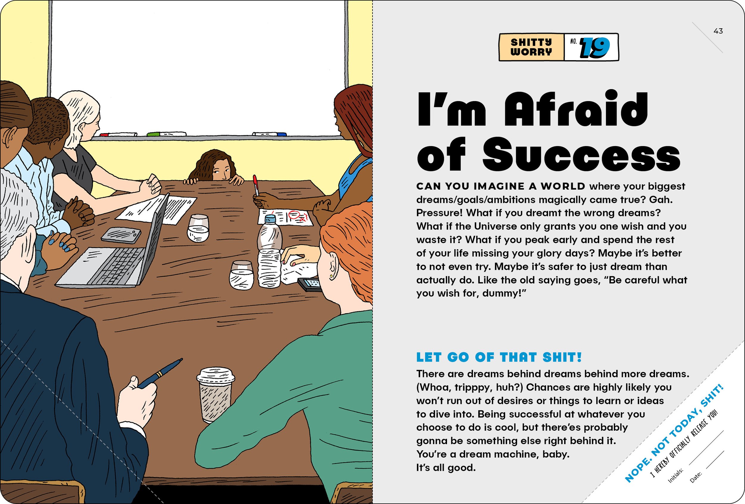 Do you have totally reasonable fears like being invited to a party, or accidentally having to talk to a delivery person because you opened the door too quickly and they were still on the porch? Or maybe you fear being trapped under a fallen tree and having no choice but to ask someone for help even though you should be strong enough to do everything by yourself? Yeah I get it! But like, it’s unhealthy—stop. These small books with terribly, hilariously relatable illustrations by the unstoppable Scotsman Peter Arkle will help to reassure you that many/most of us feel just as you do, and it’s ok to feel that way! And also to let go of feeling that way! Which is the option I would recommend (when you get there). Just write down the burdensome habit you wish to release in the page corner, tear it out, and destroy it. Bam, you are free. Wow, you look 5 years younger!