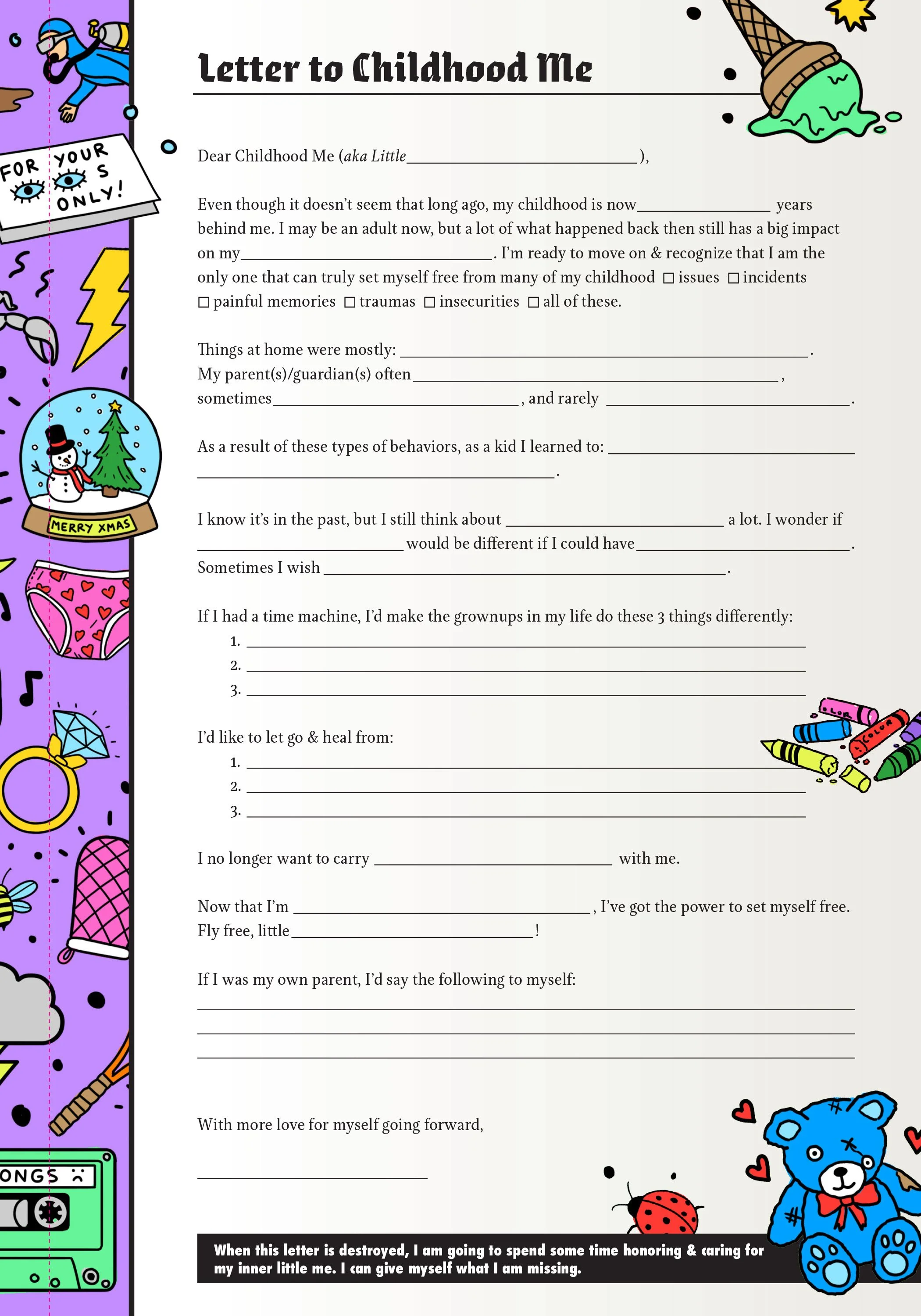 I can think of lots of angst-y letters I’d feel good writing—but not very many I would be thrilled about having sent. The 25 guided letters in these 2 portfolios can be filled out for your ex, your boss, your landlord, your barista, the universe, whoever—and then… just destroy it!! Or send it, but that’s an option only for daredevils and bridgeburners. Wait a week or two and see how you feel. I am Team Destroy, Don’t Send. But that’s me.